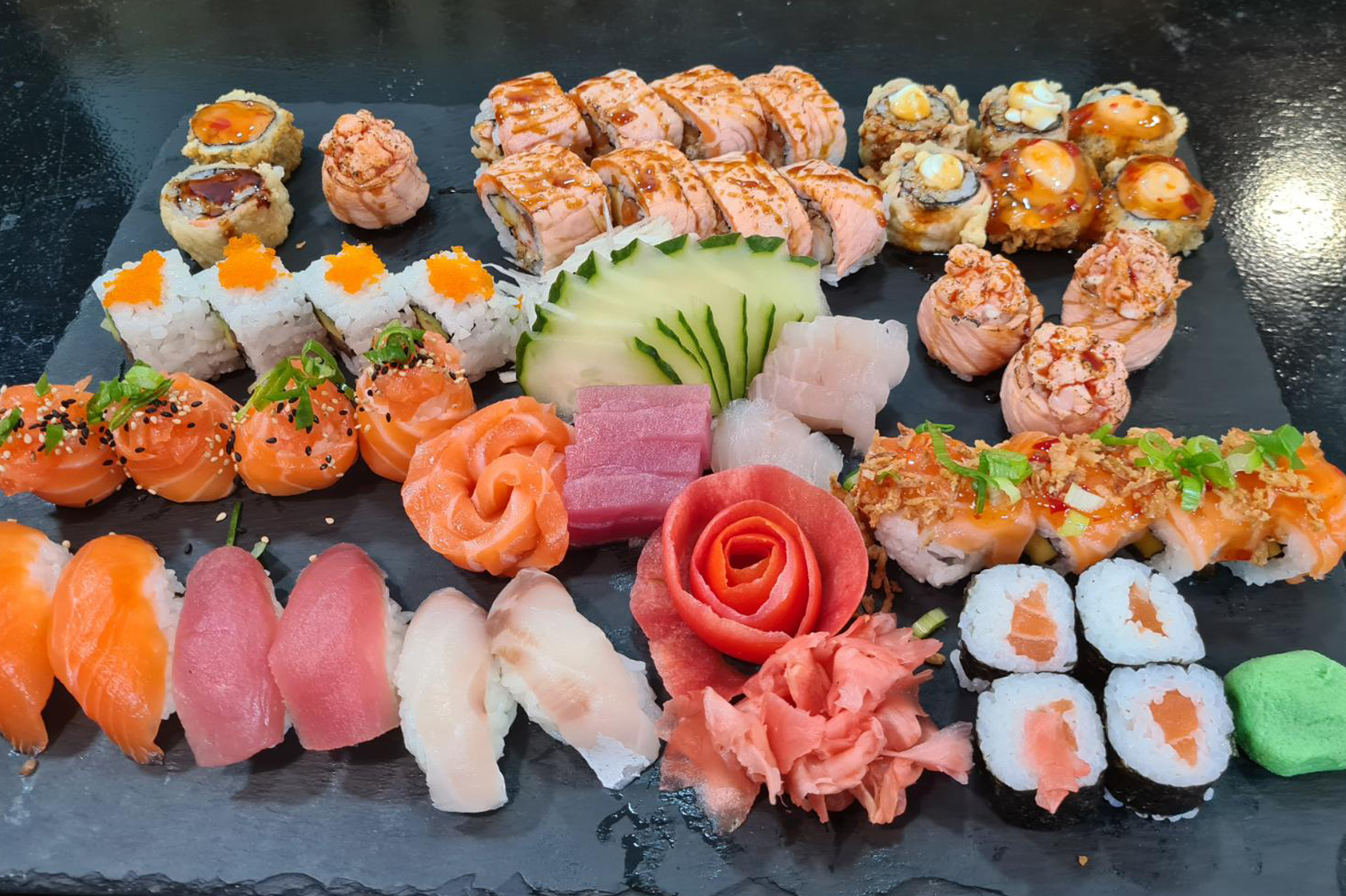 4 ou 8 peças com camarão, alface, abacate, atum e molho ponju